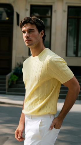 Erkek Örgü Desen Bisiklet Yaka Triko Tişört 100 Pamuk Akrilik