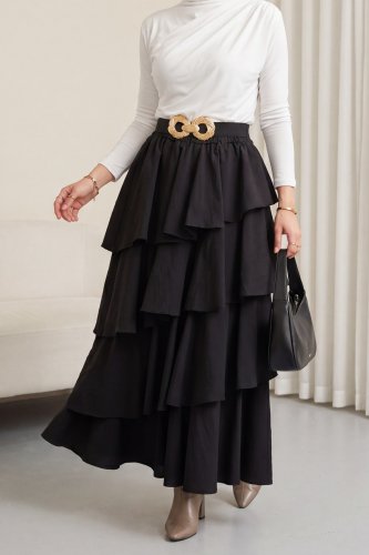 • Beli Lastikli Katlı Astarlı Cupra Etek Siyah