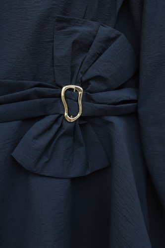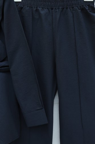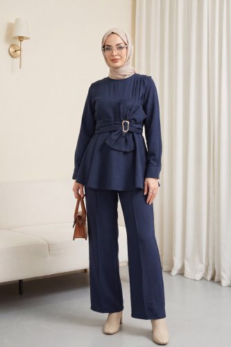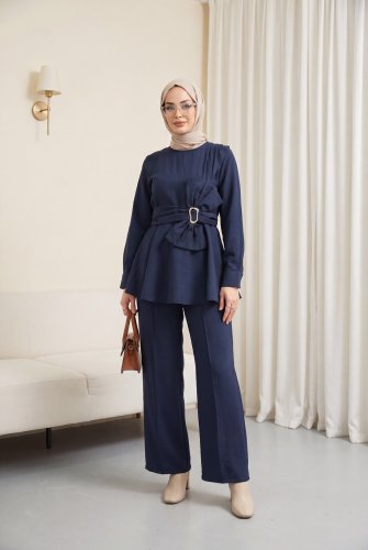 Beli Tokalı Fiyonk Detaylı Pantolonlu Cupra Takım Lacivert